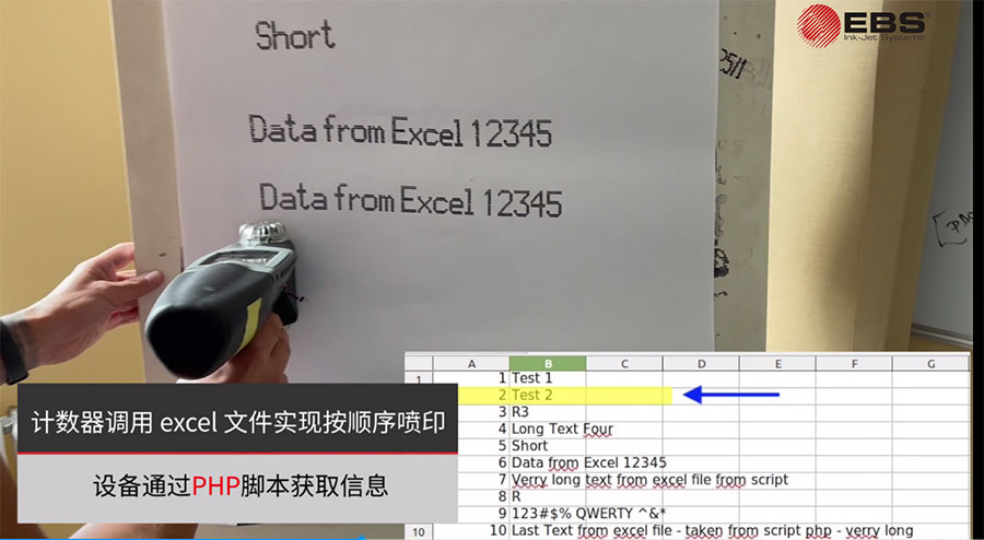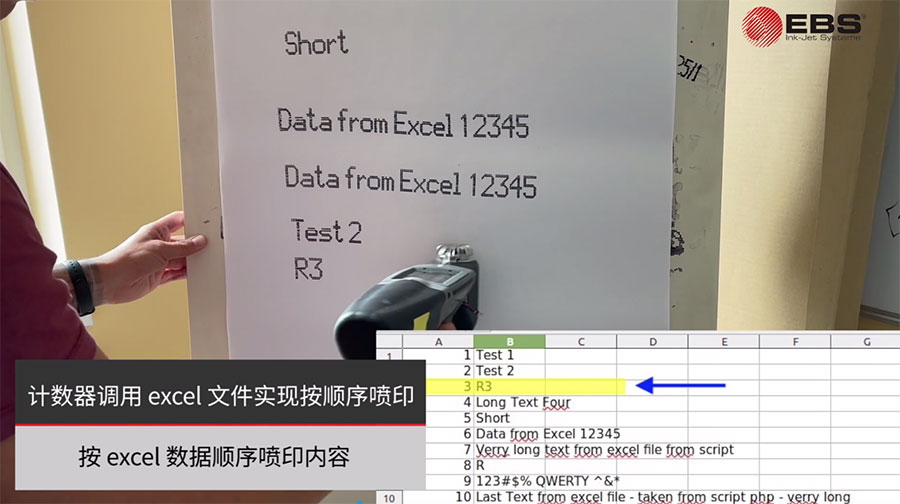EBS-260智能手持噴碼機升級后,可實現的功能之一是:在計數器中輸入起始序號,即可從起始數據開始,按順序噴印Excel表中的數據。