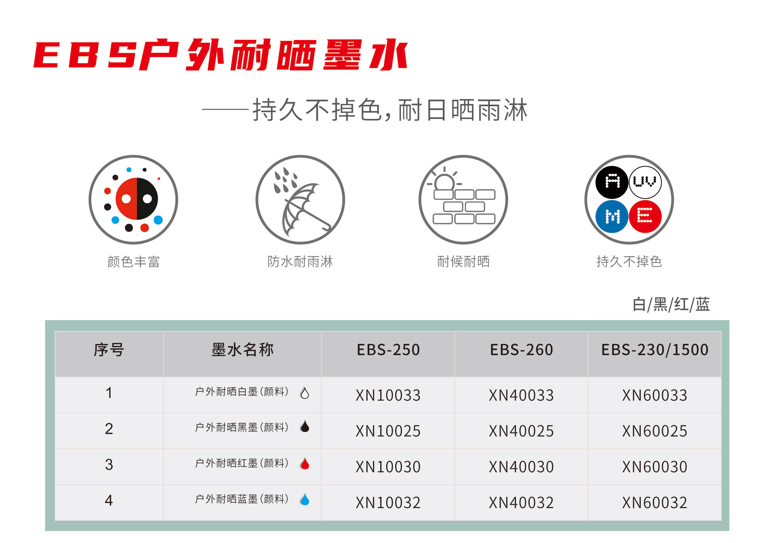 耐日曬雨淋,持久不掉色——EBS噴碼機戶外墨水(5色可選)