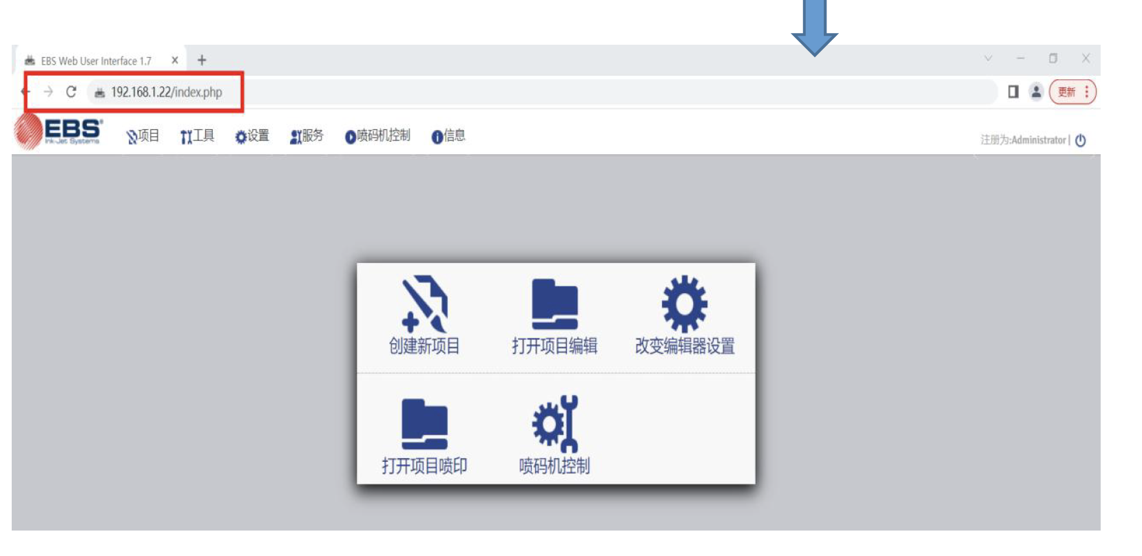 從電腦上打開火狐瀏覽器或者Google 瀏覽器,在瀏覽器網址欄輸入噴碼機IP 地址,然后按回車鍵,進入到噴碼機網頁編輯器。