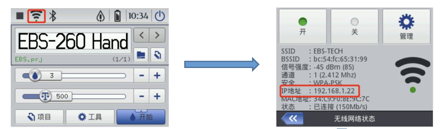 EBS260智能手持噴碼機怎么與電腦WIFI連接,讓噴碼機與電腦處于同一個局域網絡,用電腦進行編輯和數據傳輸?