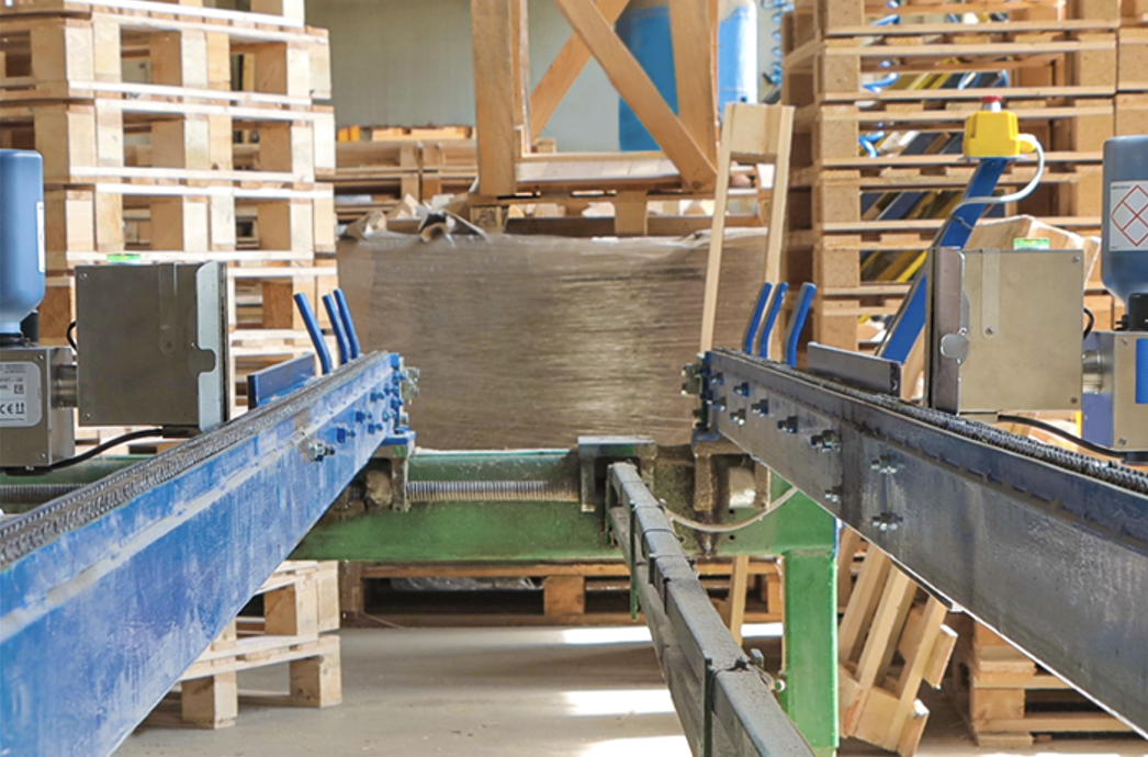 EBS-2600自動噴碼機可以集成到木托盤生產線后端中,非常適合自動化生產線,生產后自動進入標識階段,無需安排人員再單獨進行標識。可以大量節省托盤整體生產時間。